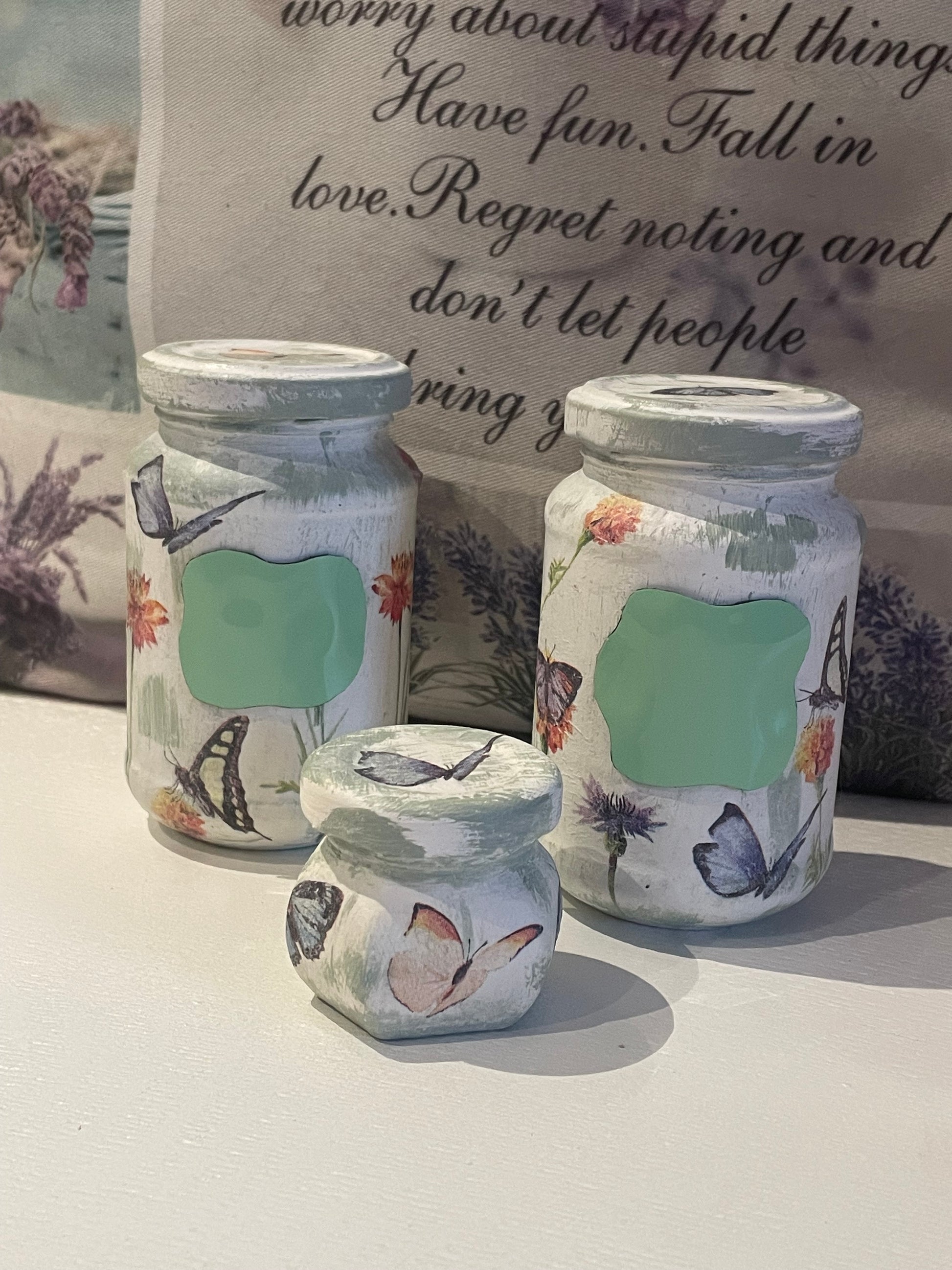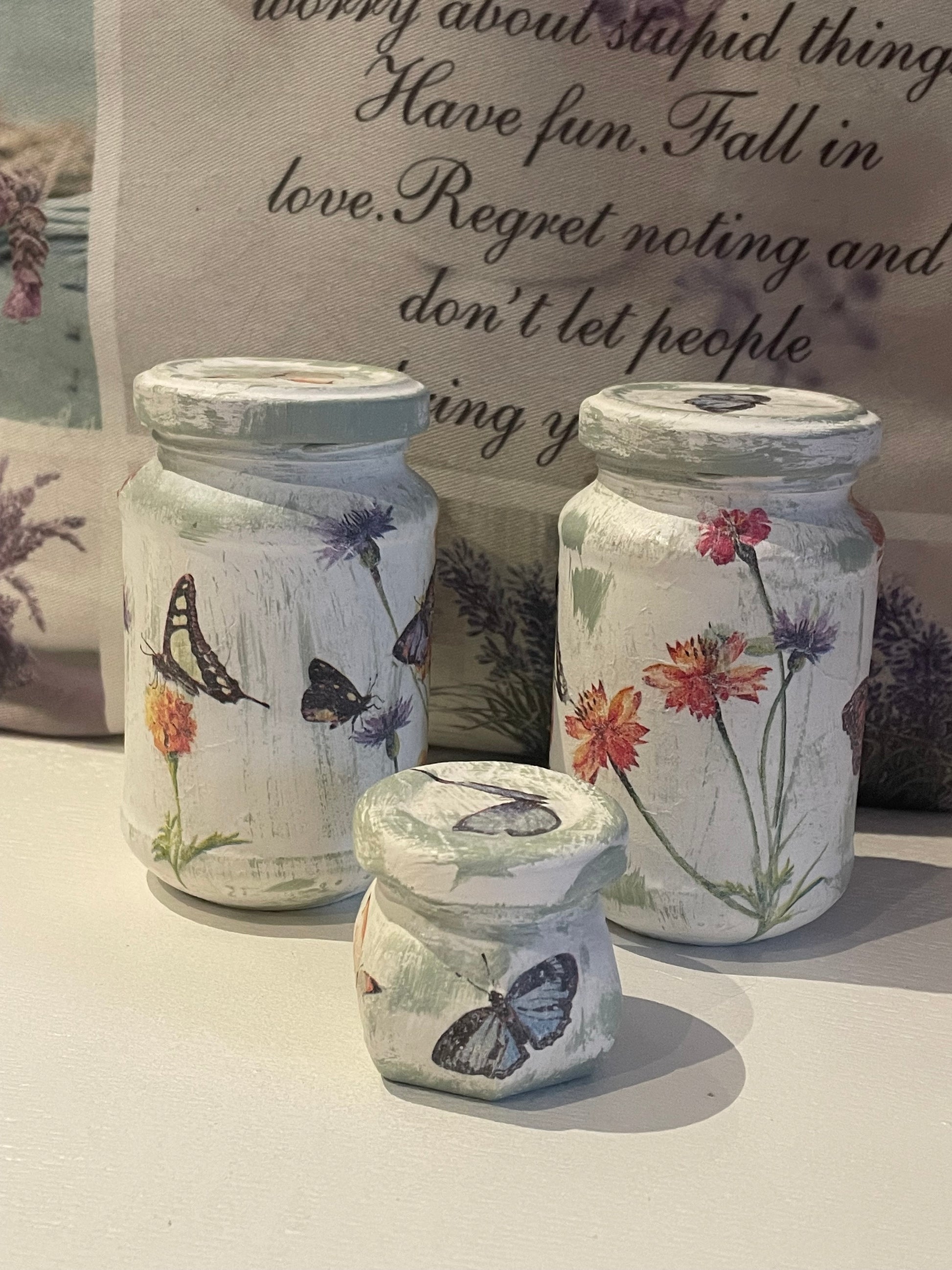 …und deshalb gibt es nun ein Frühlingsset.. schöne kleine Gläser - wie immer nachhaltiges UPCYCLING -