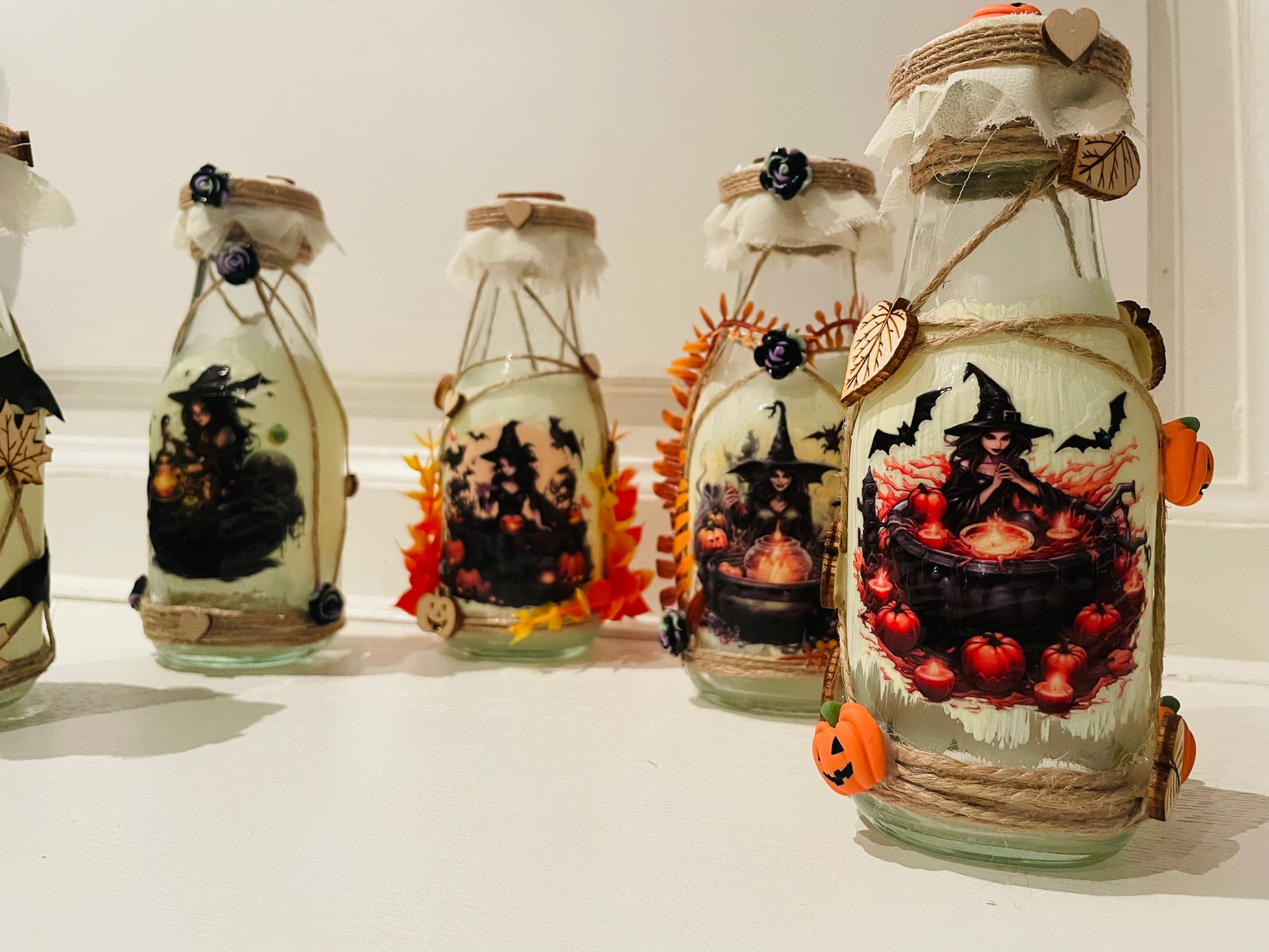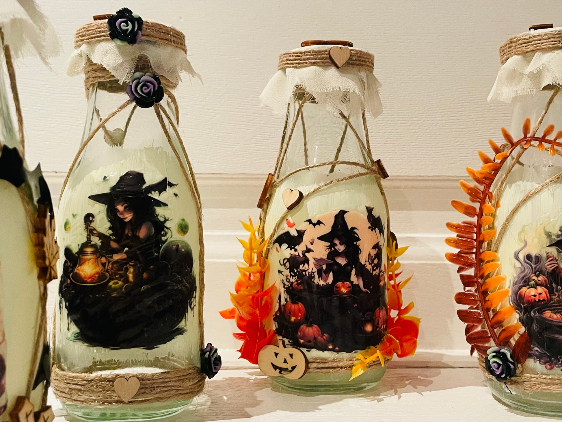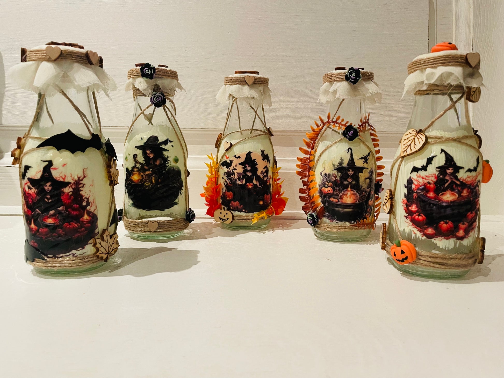 Das Set besteht aus fünf verschiedenen Flaschen im liebevoll individuell gestalteten Witch-Design.